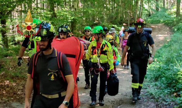 Non essendo possibile il trasporto con l’elicottero per la folta vegetazione, il recupero è avvenuto con una barella e trasportato a braccia dai soccorritori che si sono alternati lungo il percorso tra vigili del fuoco e soccorso alpino fino a raggiungere l’ambulanza. Intervento terminato alle 15:30.