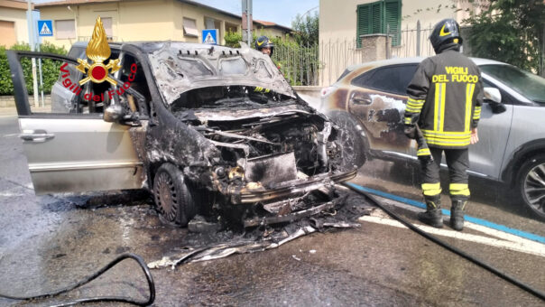 Arrestata la marcia, l’incendio si è propagato per irraggiamento ad altre due vetture parcheggiate sulla strada. I vigili del fuoco hanno provveduto ad effettuare lo spegnimento delle due vetture mentre una terza risulta danneggiata. Non ci sono persone coinvolte.