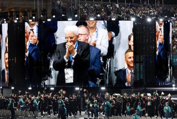 PARIGI – Il presidente Sergio Mattarella, sorridente, ha applaudito, in piedi, gli atleti azzurri dei Giochi Paralimpici che hanno sfilato – con abiti fra i più eleganti e sobri della cerimonia, in blu scuro – alla Cerimonia inaugurale sugli Champs-Elysées. Davanti, i portabandiera azzurri Luca Mazzone e Ambra Sabatini.
