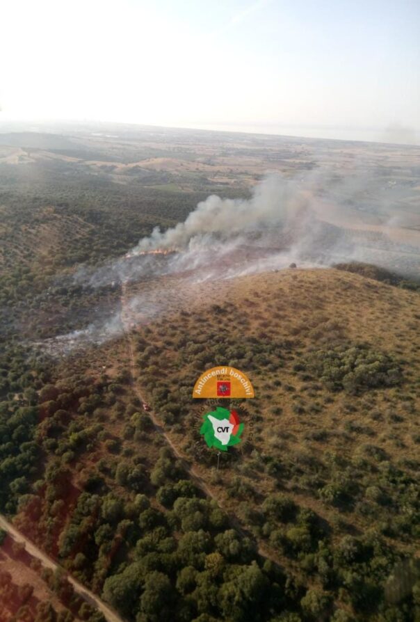 CAPALBIO (GROSSETO) – Incendio boschivo sulle colline di Capalbio, in località Campocane (Grosseto). Le fiamme si sono sviluppate all’alba di oggi, 31 agosto 2024, in una zona costituita da macchia mediterranea e olivastri. Il vento di nord-est, con relativa bassa umidità, ha favorito l’allargamento del fronte. La sala operativa regionale ha disposto l’invio immediato di due elicotteri della flotta regionale, 6 squadre di volontariato antincendi boschivi e operai forestali dell’Unione Comuni del Fiora, a cui appartiene anche il direttore che coordina le operazioni di spegnimento.