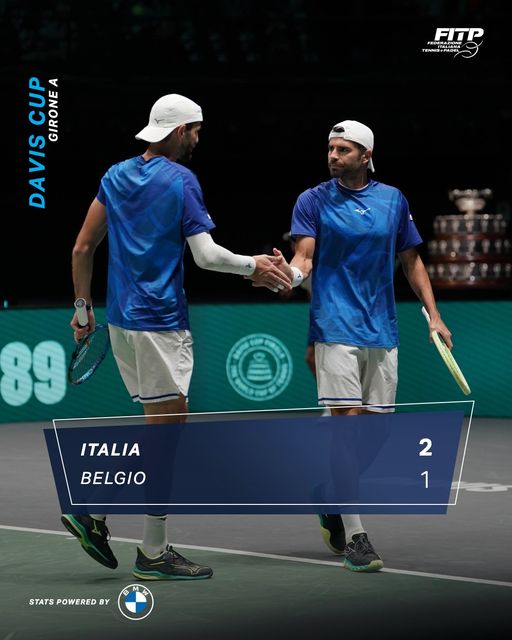 BOLOGNA – L’Italia batte il Belgio 2-1 grazie alle vittorie di Matteo Berrettini, seppur in rimonta, contro il 19enne Alexander Blockx ed a quella del doppio Simone Bolelli-Andrea Vavassori che superano in due set 7-6 7-5 Sander Gill e Joran Vliegen., dopo la doccia fredda per la sconfitta di Flavio Cobolli, all’esordio in Davis, contro Zizou Berg.