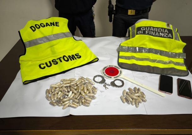 appurare che la passeggera aveva ingerito 114 “ovuli” in contenitori plastici rigidi avvolti in strati di nastro adesivo i quali, una volta espulsi, sono risultati contenere sostanza stupefacente del tipo eroina, per un peso complessivo di circa 1.265 grammi.