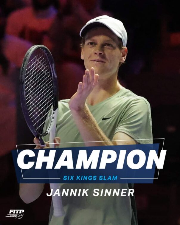 Jannik Sinner da favola: ha anche vinto il Six Kings Slam, ricca esibizione sul duro di Riad (Arabia Saudita). L’altoatesino, orgoglioso di chiudere l’anno come numero uno del ranking Atp, ha battuto in tre set un avversario ormai abituale: Carlos Alcaraz. Punteggio: 6-7, 6-3, 6-3.