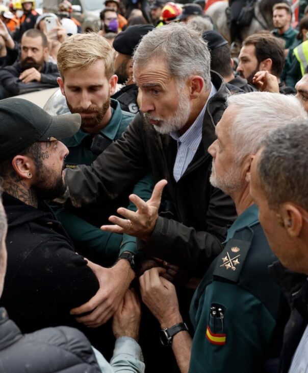 VALENCIA (SPAGNA) – Re Felipe VI in visita nelle zone alluvionate è stato contestato oggi, 3 novembre 2024, dalla folla quando, insieme al premier Pedro Sanchez, è arrivato a Paiporta, uno dei centri più colpiti dalla Dana, nella periferia di Valencia.