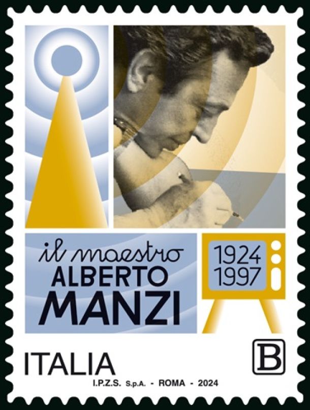 La vignetta “riproduce un ritratto di Alberto Manzi inserito tra un traliccio ricetrasmittente e un televisore in stile anni Sessanta, rappresentativi dell’importante ruolo di insegnante ed educatore che Alberto Manzi svolse con la trasmissione Rai ‘Non è mai troppo tardi’: primo esempio di didattica a distanza per adulti che contribuì notevolmente all’alfabetizzazione della popolazione italiana”. Completano il francobollo le legende ‘Il Maestro’, ‘Alberto Manzi’, le date ‘1924-1997’, la scritta ‘Italia’ e l’indicazione tariffaria ‘B’. L’annullo primo giorno di emissione sarà disponibile presso lo sportello filatelico dell’ufficio postale di Bologna 34.