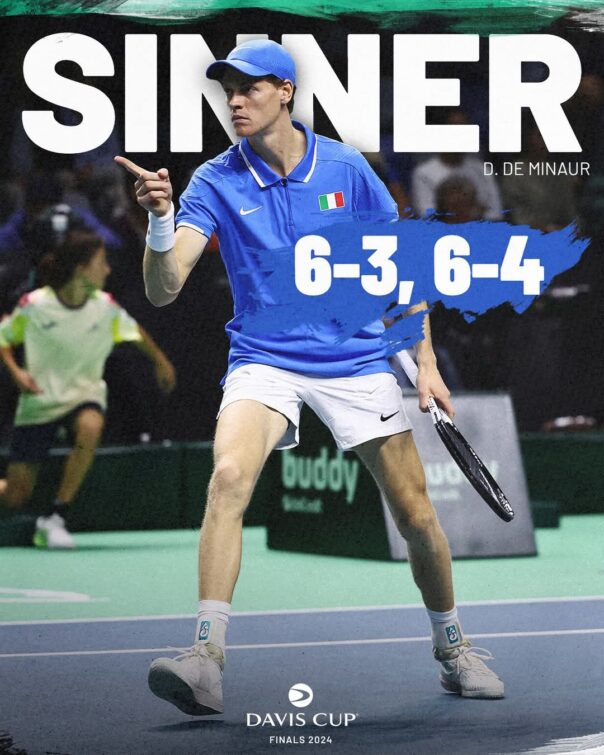 Dopo la vittoria sofferta di Matteo Berrettini (35 Atp) su Thanasi Kokkinakis (77) per 6-7(6) 6-3 7-5, maturata in due ore e 46 minuti di gioco, a chiudere i conti è stato Jannik Sinner, leader del ranking mondiale, che nel match tra i numeri uno ha superato Alex de Minaur (9) con il punteggio di 6-3 6-4 in un’ora e 29 minuti di una partita mai in bilico. “Iniziare avanti 1-0 è diverso, grazie Matteo (Berrettini, ndr) e a tutti gli italiani qui – ha detto a caldo il fuoriclasse di San Candido – E’ bello tornare in finale. la Davis mi dà una delle sensazioni migliori di sempre, è stato un match difficile oggi, sono felice di come sia andata”.