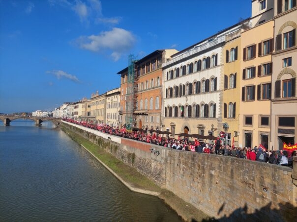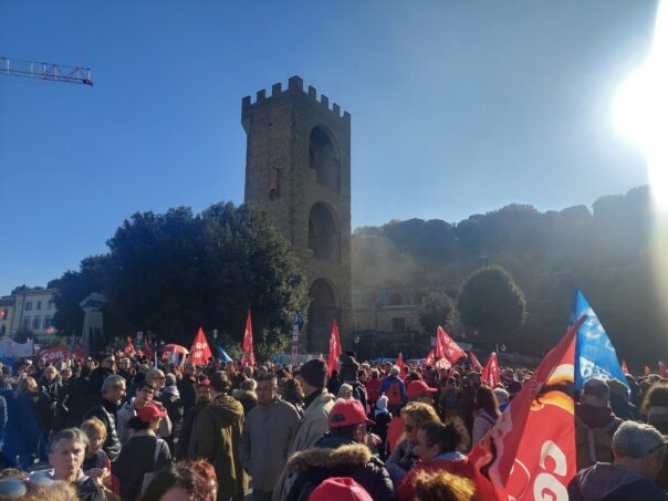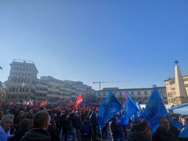 FIRENZE – Alla manifestazione regionale toscana di Firenze di Cgil e Uil per lo sciopero generale di oggi, 29 novembre 2024, “hanno partecipato oltre 70mila persone”. Lo affermano Rossano Rossi, segretario generale della Cgil Toscana, e Paolo Fantappiè, segretario generale della Uil Toscana, alla testa del lungo corteo che sta sfilando per le vie del centro storico cittadino.