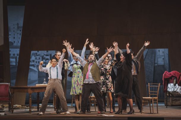 Gianni Schicchi, come si sa, è un gioiello dell’opera comica italiana, nel quale l’arte e l’ironia di Puccini sono supportate dallo spiritosissimo libretto di Giovacchino Forzano; un’interazione perfetta che funziona sempre. Anche qui cast giovane e valente a supportare l’espertissimo protagonista Roberto De Candia (Lauretta Julia Muzychenko Zita Valentina Pernozzoli Rinuccio Iván Ayón Rivas Gherardo Yaozhou Hou Nella Nikoletta Hertsak Gherardino Walter Zecca Betto di Signa Gonzalo Godoy Sepúlveda Simone Adriano Gramigni Marco Yurii Strakhov La Ciesca Aleksandra Meteleva Maestro Spinelloccio/Messer Amantio Di Nicolao Davide Sodini Pinellino Huigang Liu Guccio Michele Gianquinto).