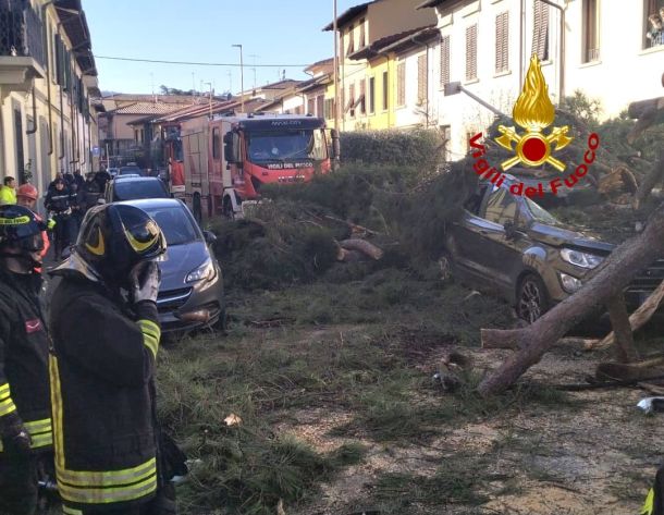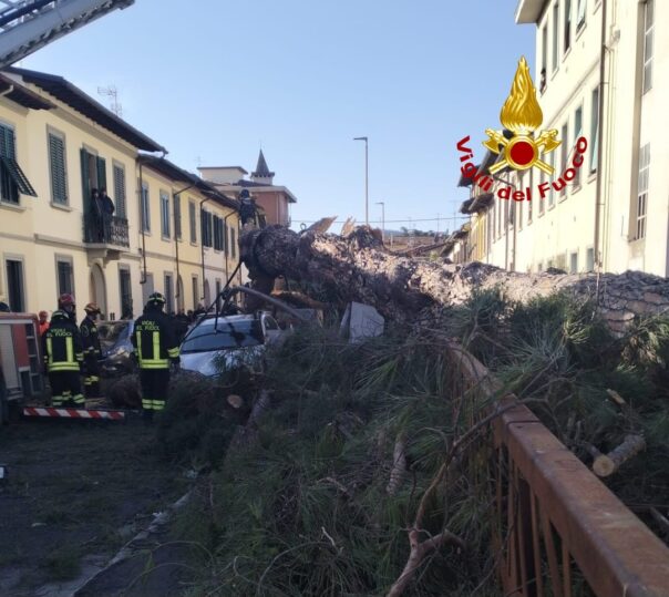 SCANDICCI (FIRENZE) – I vigili del fuoco del comando di Firenze, distaccamento di Fi-Ovest e di San Casciano in Val di Pesa, sono intervenuti stamattina, 12 gennaio 2025, alle 10 nel comune di Scandicci in via Rolando Burchietti per la caduta di un grosso pino su tre autovetture parcheggiate e uno scooter.