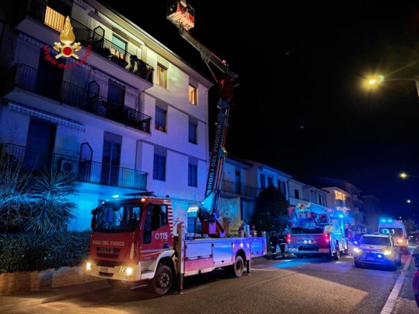 Sul posto i Vigili del fuoco intervenuti anche con la piattaforma, hanno fatto ingresso all’interno dell’appartamento invaso dalle fiamme ed iniziato lo spegnimento dell’incendio e verificato che all’interno non vi fossero persone.