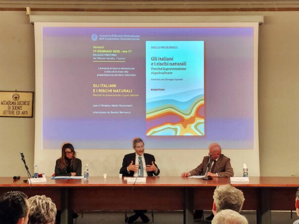 Così il ministro della Protezione civile, Nello Musumeci, nel Palazzo Pretorio di Lucca, alla presentazione del suo libro “Gli italiani e i rischi naturali, perché la prevenzione ci può salvare, invitato dal segretario generale dell’Autorità di bacino dell’Appennino Settentrionale, Gaia Checcucci, alla presenza del prefetto di Lucca, Giuseppina Scaduto, del sindaco di Lucca, Mario Pardini, del sindaco di Pisa, Michele Conti, del sindaco di Pistoia, Alessandro Tomasi, del sindaco di Piombino, Francesco Ferrari, di sindaci della Lucchesia e del Pistoiese, del senatore Paolo Marcheschi, dei consiglieri regionali Alessandro Capecchi, Vittorio Fantozzi, Massimiliano Baldini e di una platea composta anche da geologi e professionisti impegnati nella difesa del territorio.