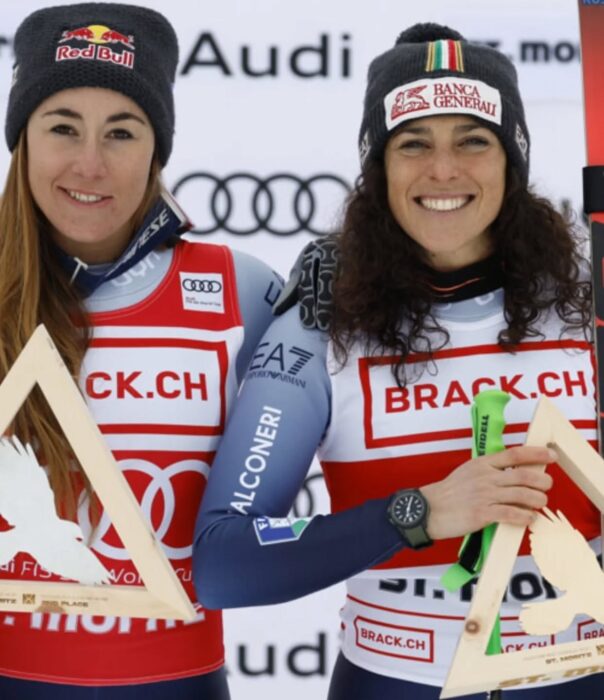 “Nello sci può succedere: un centesimo di secondo fa parte del gioco”, ghigna Brignone. Accanto a lei Sofia Goggia, che aggiunge senza alcun rammarico: “Mi si è dislocata la spalla su in cima, ma ho sciato comunque bene, ci sono abituata, va bene così. La sfida con Federica da parte mia sicuramente è uno spronarmi ad essere sempre sul pezzo in più discipline. Anch’io sto facendo delle grandi cose, contando la mia stagione e la preparazione, l’infortunio, è tanta roba, sono lì anch’io, quindi ottimo”.