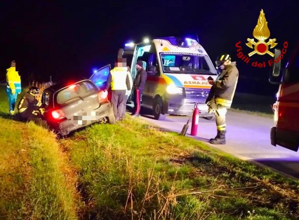 Il conducente di un’auto per cause in fase di accertamento ha perso il controllo della vettura uscendo dalla sede stradale. Il personale dei Vigili del Fuoco ha collaborato con il personale sanitario.