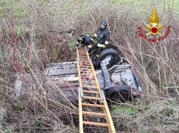 Peccioli: auto si ribalta e finisce in un fossato pieno d’acqua. Tre feriti, uno è grave
