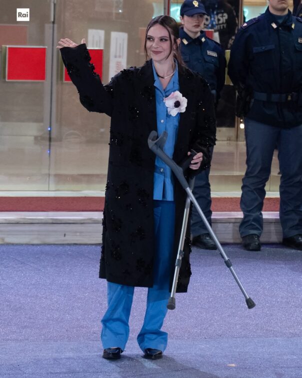 Tra gli artisti che sfileranno sul palco dell’Ariston, c’è anche Francesca Michielin, che dopo l’infortunio dei giorni scorsi (è caduta sulle scale del teatro durante le prove), si presenterà sul red carpet con tutore e stampelle, sfoggiando però il suo miglior sorriso.