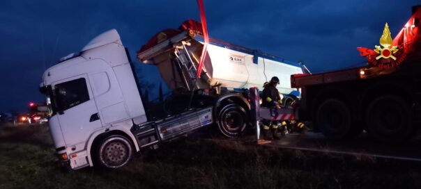 All’arrivo sul posto della squadra, il personale sanitario aveva già provveduto al trasporto in ospedale di uno dei due occupanti del tir tramite Elisoccorso ed alle medicazioni dell’altro occupante.