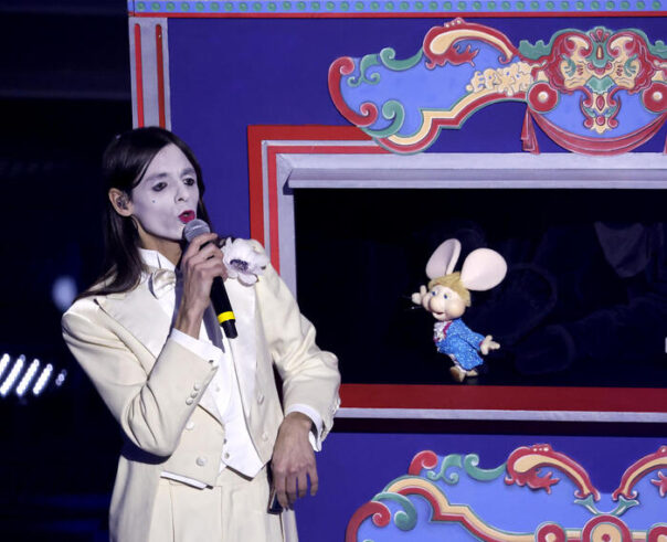 TOPO GIGIO CANTA MODUGNO – Era il duetto più atteso quello di Lucio Corsi con Topo Gigio con la cover “Volare- Nel Blu dipinto di blu” di Domenico Modugno. Un tuffo nel passato e nell’infanzia che non ha deluso il pubblico dell’Ariston. Applausi anche della Sala stampa.