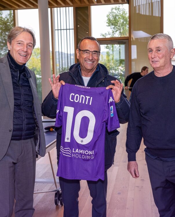 Piccolo intermezzo lieto: oggi, 19 febbraio 2025, è stato ospite del Viola Park il conduttore dell’ultimo festival di Sanremo, Carlo Conti, a cui è stata regalata una maglia ufficiale della squadra.
