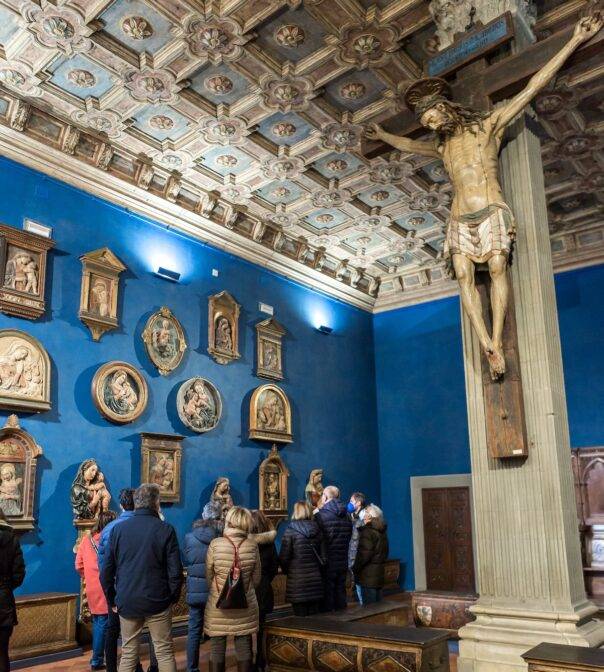 La visita permette di conoscere la sua straordinaria collezione, dalle grandi opere – fra cui la Carità di Tino di Camaino o la Madonna dei Cordai di Donatello – alle preziose testimonianze di arti minori quali cassoni, maioliche, tappeti, armi, bronzetti. Per i bambini: Un mondo tutto blu alle 11 durata: 50’ e si concluderà con un momento artistico all’insegna del colore Blu. Tutte le visite guidate e le attività sono gratuite e la prenotazione è obbligatoria. All’atto della prenotazione è possibile riservare un solo appuntamento nel corso della giornata per un massimo di 5 persone.