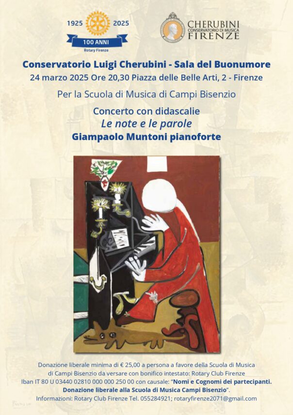 Firenze, Conservatorio Cherubini: «Le note e le parole», con Giampaolo Muntoni. A favore della Scuola di musica di Campi alluvionata