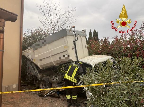 Pontedera: camion dei rifiuti finisce in un giardino. Conducente all’ospedale