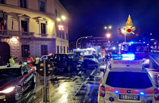 Firenze: incidente con due auto stanotte nel viale Rosselli. Conducenti incastrati fra le lamiere