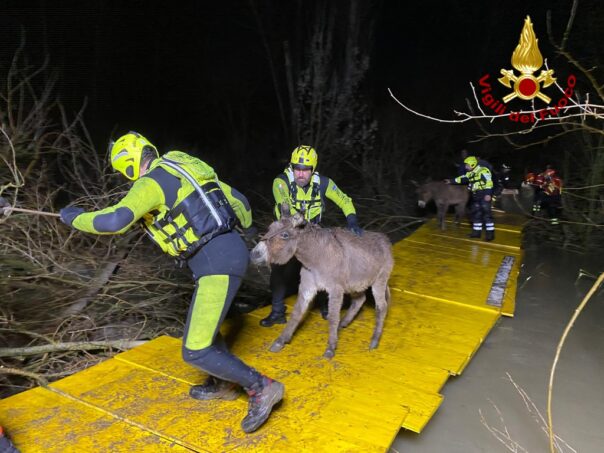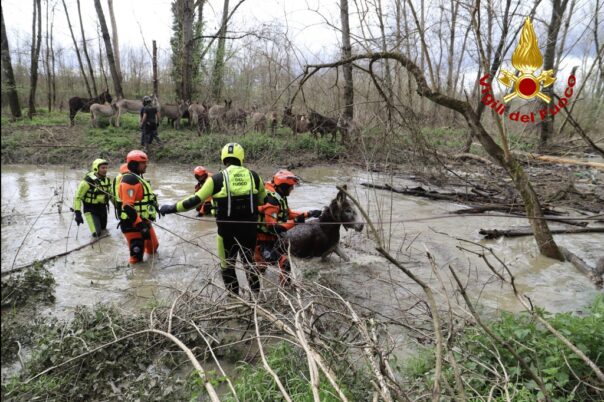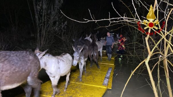 Terranuova Bracciolini: 80 asini bloccati dalla piena dell’Arno. Salvati dai vigili del fuoco (foto)