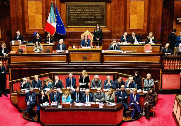 Meloni al Senato: “Piano Ue roboante rispetto alla realtà”. Sintesi con la Lega. Difende il Colle. Tensione verso Renzi