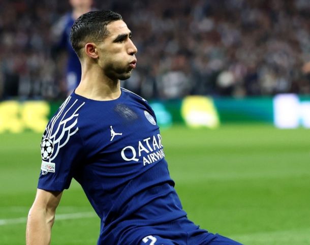 Hakimi festeggia il gol del momentaneo 0-1 contro l’Aston Villa (foto Instagram PSG)