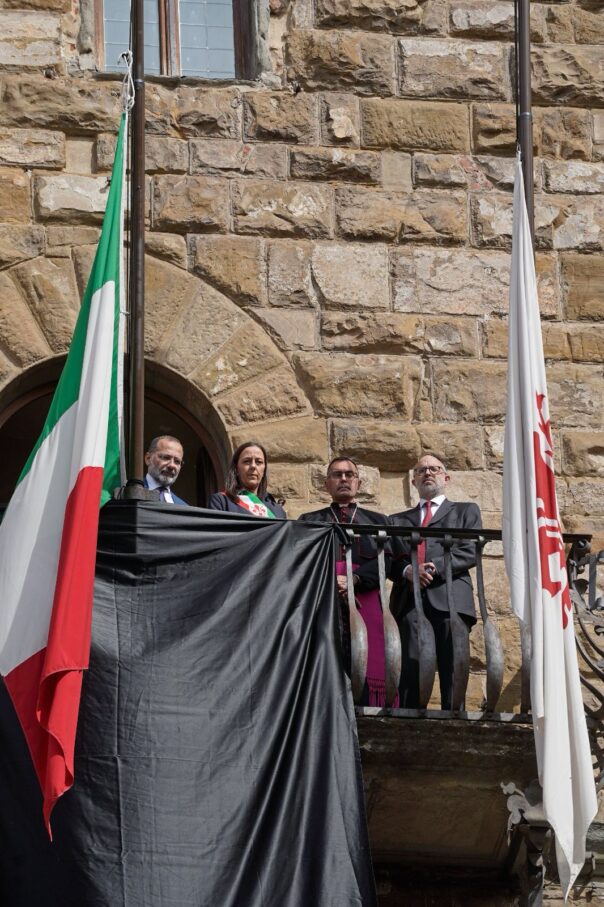 Morte Papa Francesco, Firenze: Palazzo Vecchio espone il drappo nero. Sindaca con Gambelli, Elzir e Piperno