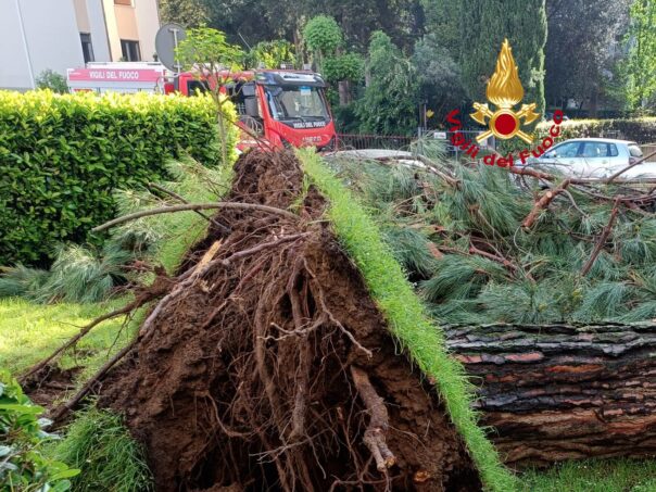 FIRENZE – Momenti di paura stamattina, 24 aprile 2025, a Firenze. I vigili del fuoco sono intervenuti intorno alle 7 in via Nicola Pisano, in seguito alla caduta di un pino che dal giardino di un condominio è finito sulla sede stradale, andando a danneggiare due autovetture e 2 ciclomotori.