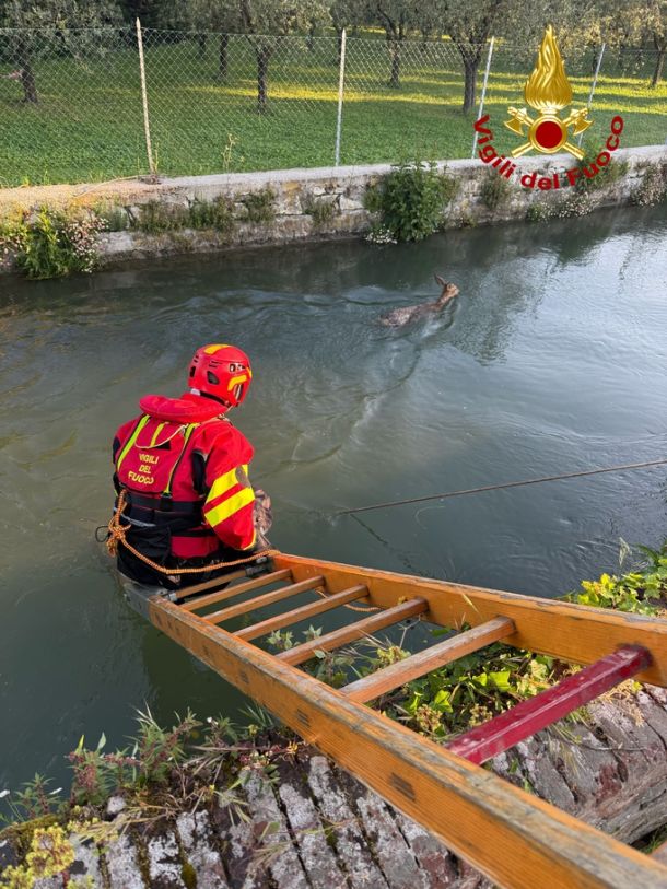 Lucca: capriolo cade in un canale e non risale. Salvato dai vigili del fuoco (foto)