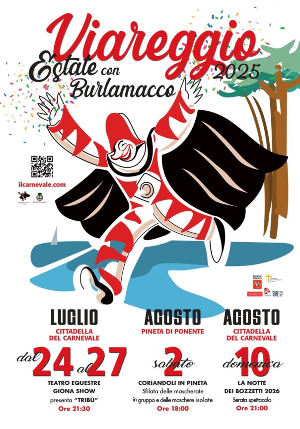 VIAREGGIO (LUCCA) – Spettacoli di teatro equestre, la sfilata delle mascherate e delle maschere sotto i pini e l’attesa Notte dei Bozzetti del Carnevale di Viareggio 2026. Dalla Pineta di Ponente alla Cittadella. Dal Teatro equestre, alla sfilata delle mascherate, fino alla Notte dei Bozzetti. Sono tre gli appuntamenti estivi con il Carnevale di Viareggio, in programma dal 24 luglio al 10 agosto 2025.
