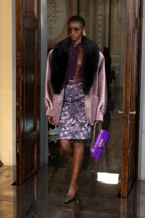 CRUISE 2026 – Dentro, lo show ha mantenuto le promesse. La collezione Cruise 2026 – diretta dal team creativo della Maison – ha raccontato un dialogo tra l’archivio e il futuro, con abiti selezionati dalle collezioni ‘heritage’ per poi virare verso silhouette futuristiche, giochi di trasparenze, ricami d’artista e tagli audaci. La sfilata è poi proseguita nella piazza Santo Spirito dove seduti ai caffè c’erano circa trecento ospiti, mentre una folla di curiosi ha assistito allo show da dietro le transenne sul sagrato della basilica.