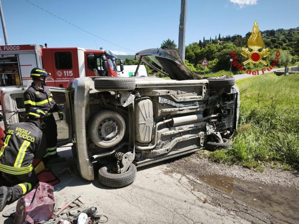 AREZZO – Incidente stradale oggi, 17 maggio 2025, ad Arezzo in località San Firenze. Coinvolte due auto, di cui una ribaltata con all’interno il conducente ferito che non riusciva ad uscire. I Vigili del Fuoco, intervenuti sul posto, hanno immobilizzato il ferito estraendolo poi dall’auto.