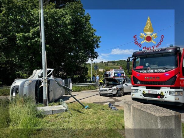 Arezzo: scontro fra auto, una si ribalta. Conducente ferito soccorso dai vigili del fuoco