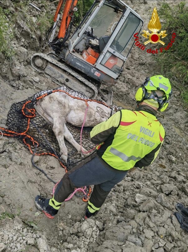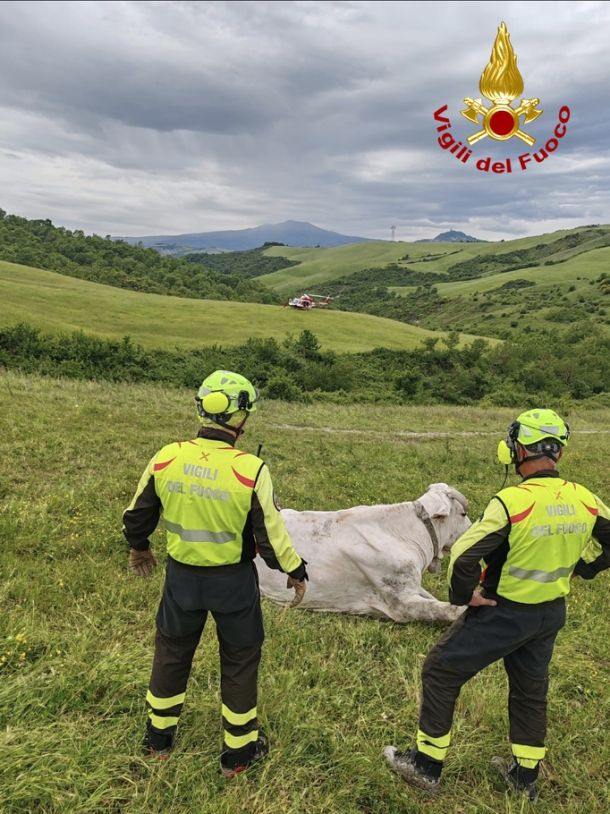 PIANCASTAGNAIO (SIENA) – I Vigili del fuoco del comando di Siena sono intervenuti oggi, 20 maggio 2025, a Piancastagnaio per soccorrere un bovino caduto in un calanco.