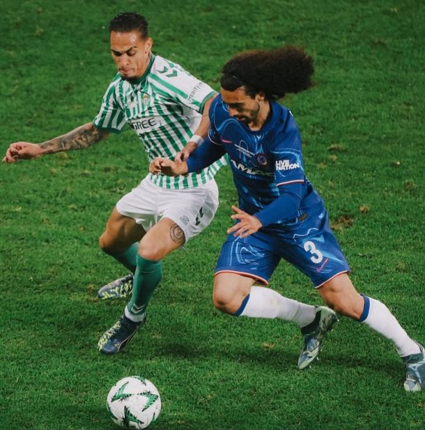 Cucurella in azione nel primo tempo del match contro il Betis (foto Instagram Chelsea FC)