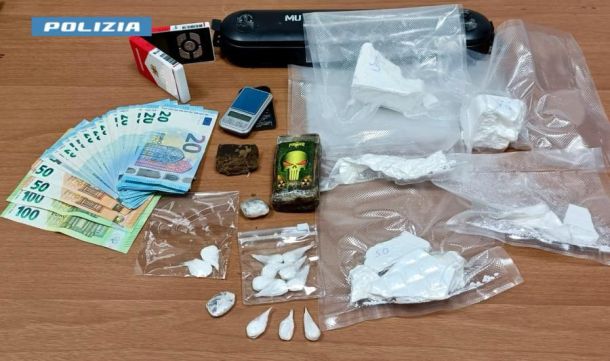 Ulteriore sostanza stupefacente è stata rinvenuta all’interno dell’abitazione del cittadino albanese. All’interno della camera da letto del 38enne, gli agenti hanno trovato 1 panetto di hashish occultato in un mobiletto ed una somma di denaro pari a 750 euro nel comodino. In cucina invece, all’interno di un cassetto del tavolo erano occultati 7 involucri in cellophane termosaldato di sostanza del tipo cocaina, 2 bilancini di precisione ed un frammento di hashish ed ulteriori 3 buste di cocaina sono state trovate all’interno di un pensile. Ancora, altre due buste di cocaina sono state rinvenute all’interno del quadro elettrico posto nel corridoio.