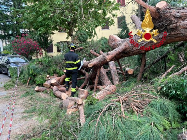 FIRENZE – I vigili del fuoco sono intervenuti oggi, 22 giugno 2025, alle ore 14:50 nel comune di Firenze in via Giuseppe Pescetti, nel quartiere del Lippi non lontano dalla stazione ferroviaria di Rifredi, in seguito alla caduta di un grosso pino di un resede condominiale.