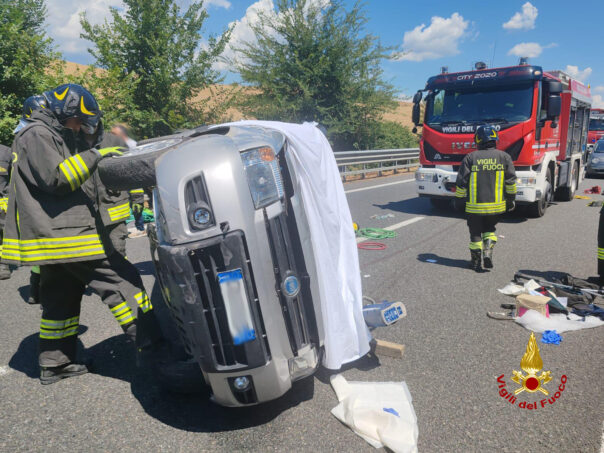 SIENA – I Vigili del fuoco del comando di Siena sono intervenuti intorno nel primo pomeriggio di oggi, 15 luglio 2025, per un incidente stradale al km 8+700 della Siena-Bettolle, tra Castelnuovo B.ga e Casetta direzione Siena. Una vettura si è ribaltata su un fianco e due dei tre occupanti sono stati estratti dall’abitacolo dalla squadra VF, per poi essere affidato ai sanitari del 118.