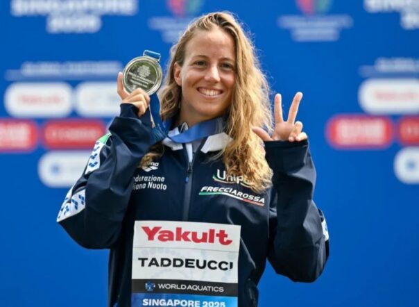 ISOLA DI SENTOSA (SINGAPORE) – Ginevra Taddeucci ancora d’argento (è il quarto) ai mondiali di nuoto di Singapore. Questa volta nella staffetta azzurra 4×1.5 chilometri. Il quartetto italiano, formato da Barbara Pozzobon, Ginevra Taddeucci, Marcello Guidi e Gregorio Paltrinieri chiude in 1h09’15″4, a 2″1 dai tedeschi con Celine Rieder, Oliver Klemet e Isabelle Gose e Florian Wellbrock, che cala il poker d’oro dimostrandosi invincibile dopo un’anno olimpico tribolato.