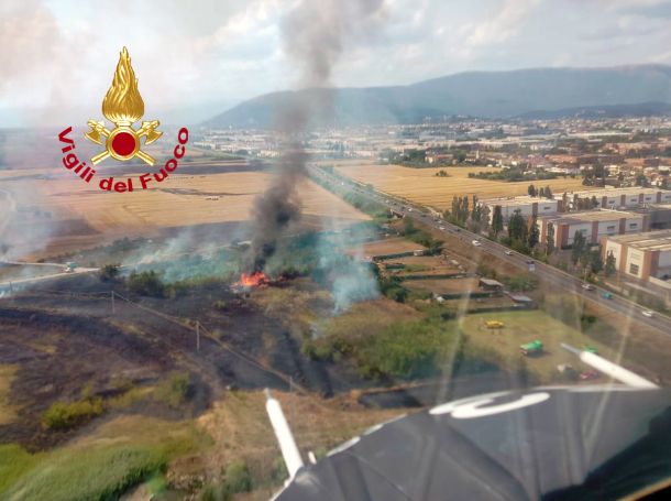 Sono in corso le operazioni di bonifica della vasta zona interessata dall’incendio di sterpaglie, che si è propagata rapidamente a causa della presenza di vento ad altri campi dove erano presenti alcune rotoballe. L’incendio ha raggiunto anche alcune baracche presenti sugli appezzamenti di terreno andate distrutte.