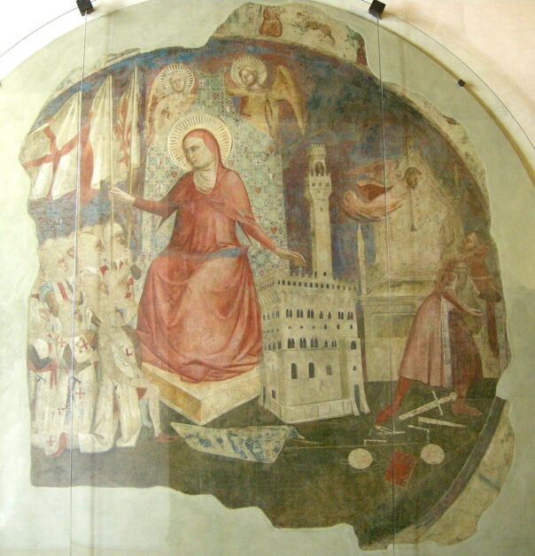 Da sabato 26 luglio 2025, in occasione del tradizionale festeggiamento annuale di sant’Anna protettrice di Firenze, sarà riaperta al pubblico il “Mezzanino”, la sala del Museo di Palazzo Vecchio nella quale si conserva, assieme ad altre opere, una rara testimonianza iconografica dell’avvenimento storico dal quale discendono gli omaggi speciali che i fiorentini tributano a questa santa: un affresco staccato di straordinaria importanza, attribuito all’Orcagna, databile tra il 1343 e il 1349 e proveniente dall’antico carcere delle Stinche, che raffigura, in chiave allegorica, il tirannico signore angioino Gualtieri di Brienne, duca d’Atene, costretto a lasciare la città da una rivolta che ebbe inizio proprio nel giorno del calendario liturgico dedicato alla Madre della Vergine.
