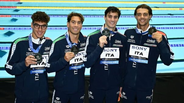 SINGAPORE – Argento mondiale per staffetta maschile della 4×100 formata da Carlos D’Ambrosio, Thomas Ceccon, Lorenzo Zazzeri e Manuel Frigo. Secondo posto e record italiano migliorato.