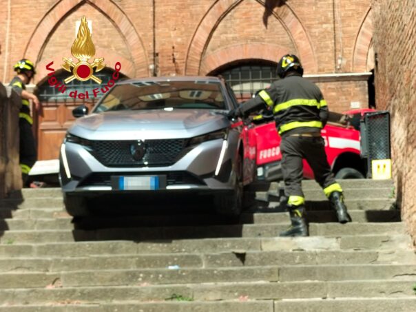 SIENA – I Vigili del fuoco del comando di Siena, oggi, 27 luglio 2025, sono intervenuti poco dopo le 14 a Siena in Via S. Martino e Vicolo dell’oro, per soccorrere il conducente di una vettura che è finita sulla scalinata.