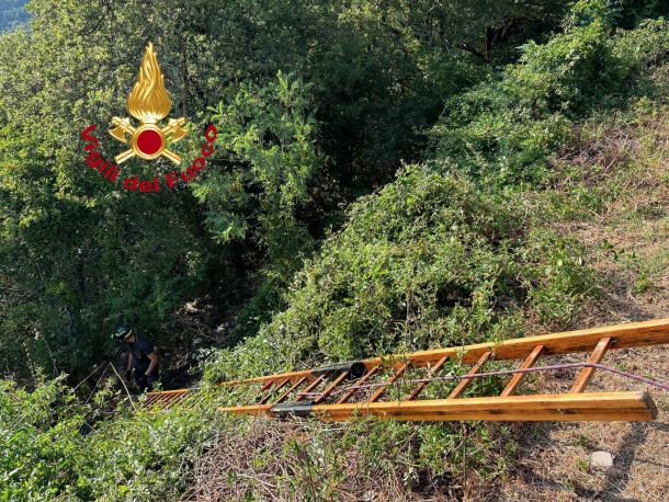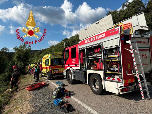 Il ragazzo è uscito dalla sede stradale mentre conduceva una moto, finendo nella scarpata tra i rovi a circa 8 metri sotto strada. I Vigili del fuoco giunti sul posto, hanno posizionato tutta la scala, 10 metri, per consentire la discesa dei materiali di soccorso e per usarla come piano di appoggio per il recupero del paziente posizionato sulla barella toboga.