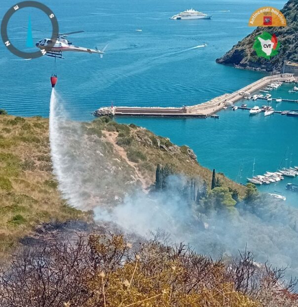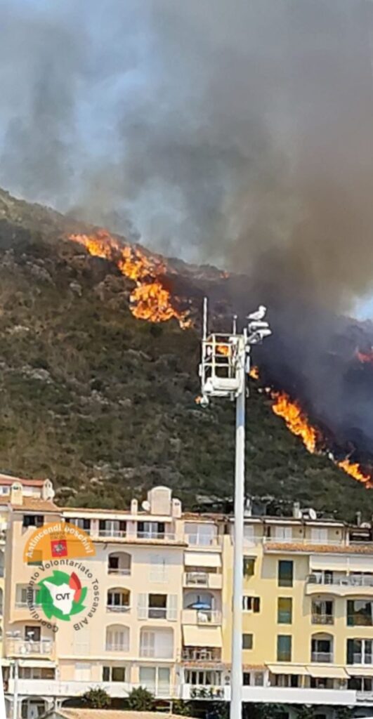 PORTO ERCOLE (GROSSETO) – Un incendio è divampato oggi, 9 agosto 2025, intorno alle 13.30 a Porto Ercole (Grosseto) in prossimità dell’abitato. Le fiamme, iniziate al bordo della strada panoramica, si sono rapidamente propagate verso Forte Filippo.
