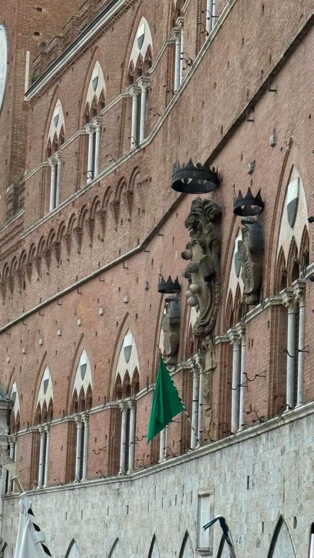 Bandiera verde esposta a Palazzo Pubblico (foto Comune di Siena)