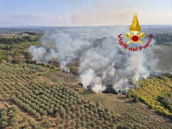 VINCI (FIRENZE) – I vigili del fuoco del comando di Firenze, distaccamento di Empoli, di Fi-Ovest e di altri comandi sono impegnati dalle ore 17.30 di oggi, 17 agosto 2025, a Vinci in via di Petroio, per un vasto incendio di sterpaglie che si sono propagate rapidamente per la presenza di vento sulla zona collinare e giunte vicino ad alcune abitazioni e infrastrutture.